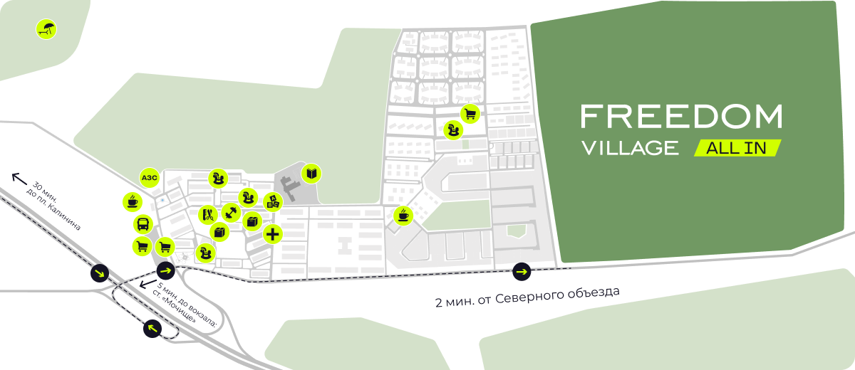 дороги — все это во FREEDOM VILLAGE будет гармонично сочетаться между собой.