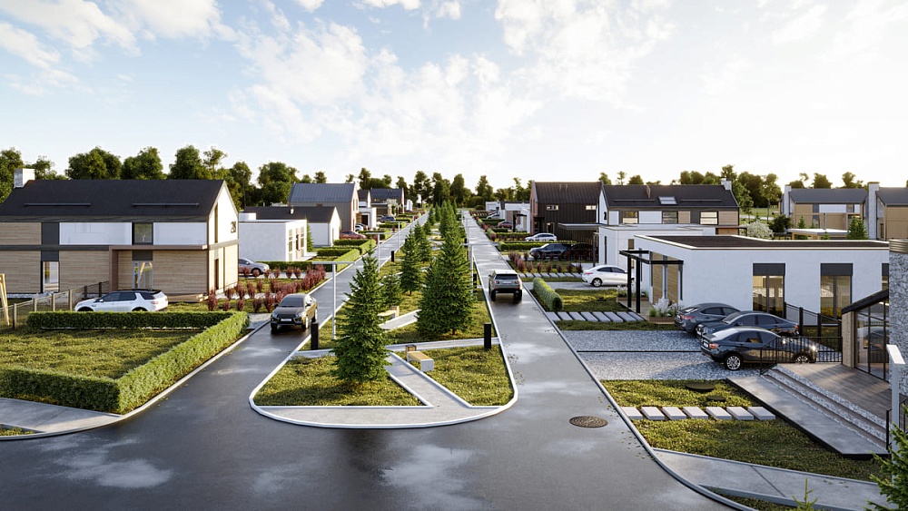 FREEDOM VILLAGE — это современное эстетичное пространство с единым архитектурным кодом, пешеходными тротуарами и асфальтированными