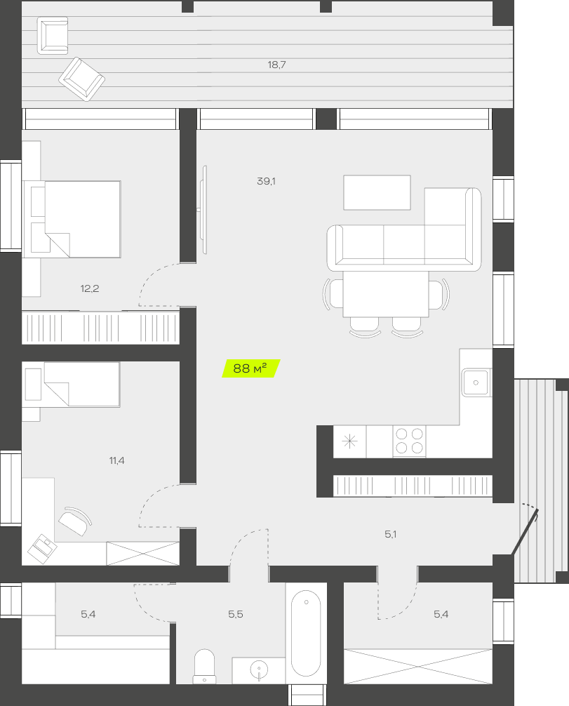 Терраса 18,7 м²