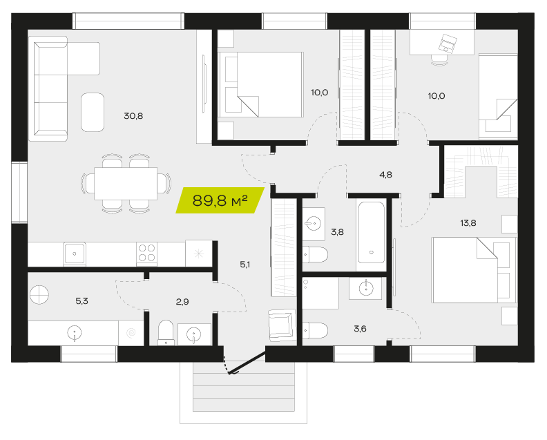 Три спальни обеспечивают достаточное пространство для семьи, позволяя каждому члену иметь собственное место для отдыха и уединения. Это особенно важно для семей с детьми, где каждый ребенок может иметь свою комнату, что способствует развитию независимости и личного пространства