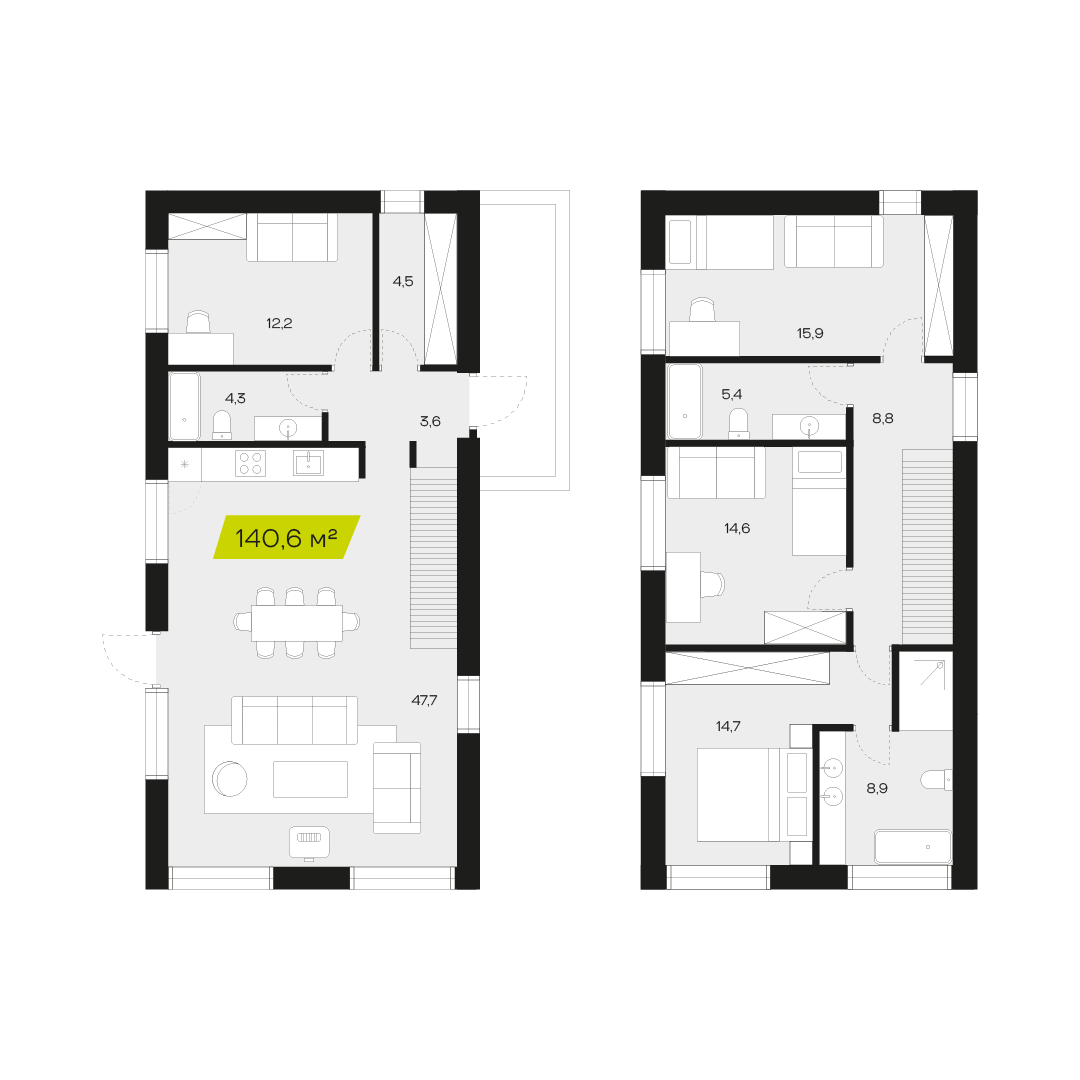 Три спальни обеспечивают достаточное пространство для семьи, позволяя каждому члену иметь собственное место для отдыха и уединения. Это особенно важно для семей с детьми, где каждый ребенок может иметь свою комнату, что способствует развитию независимости и личного пространства