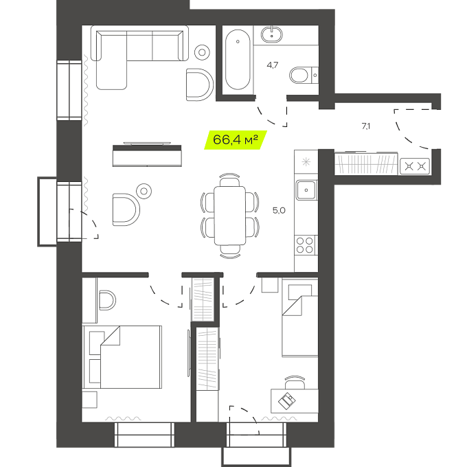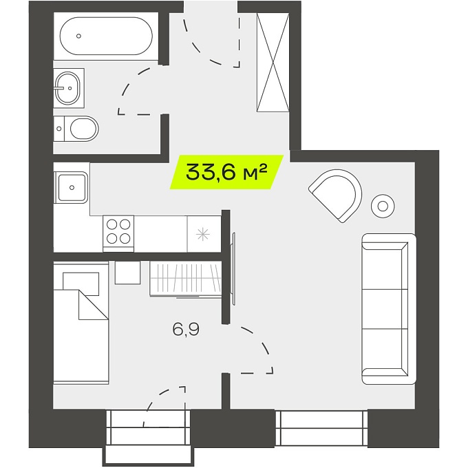 Патио — полноценное приватное продолжение квартиры на свежем воздухе. Выход на патио предусмотрен из каждой комнаты.