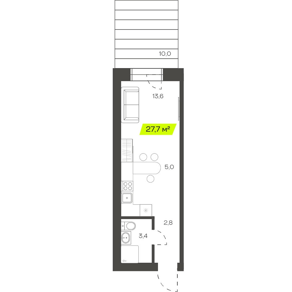Трехкомнатная студия, 65,83м 2