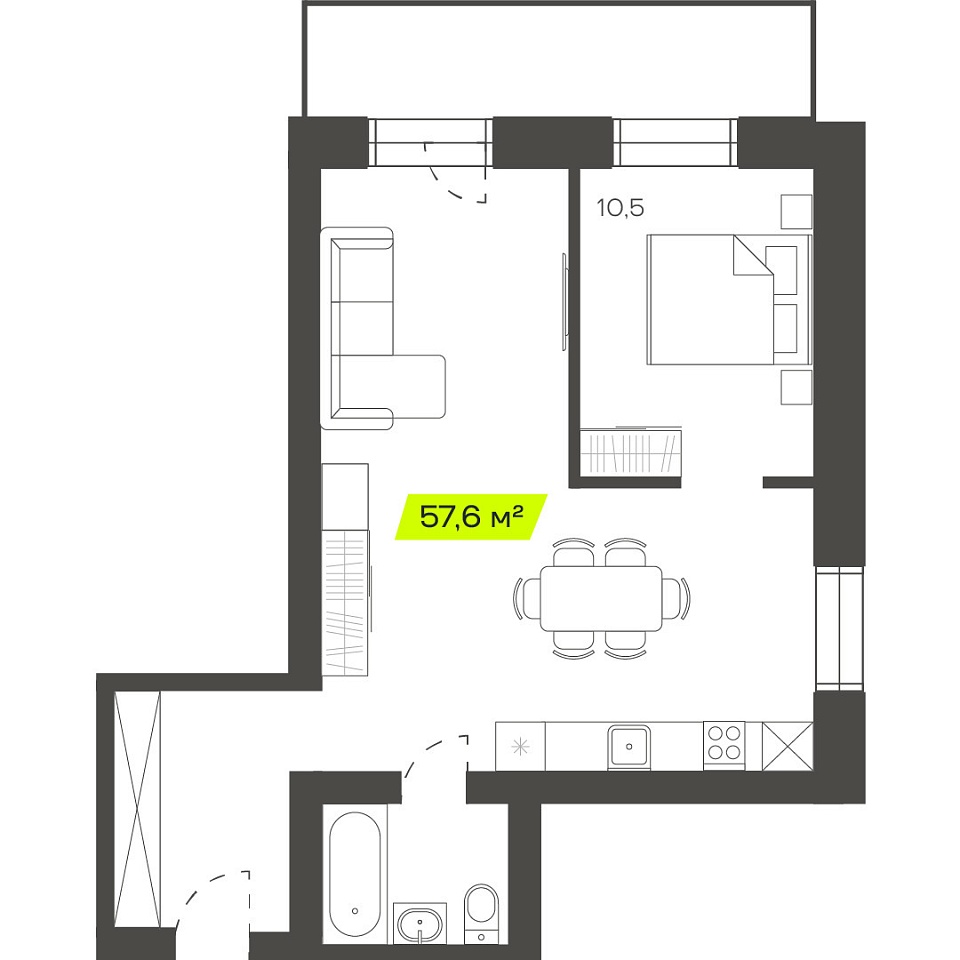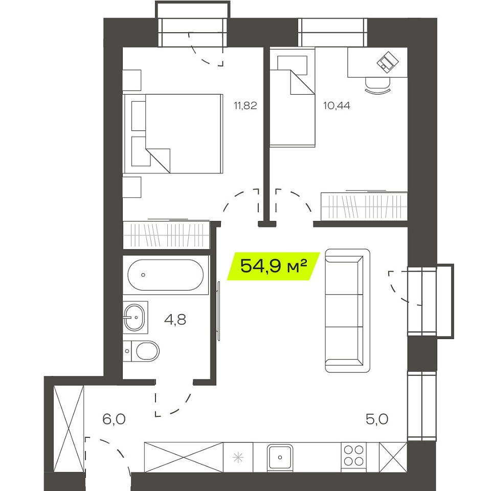 Двухкомнатная квартира, 76,15м 2