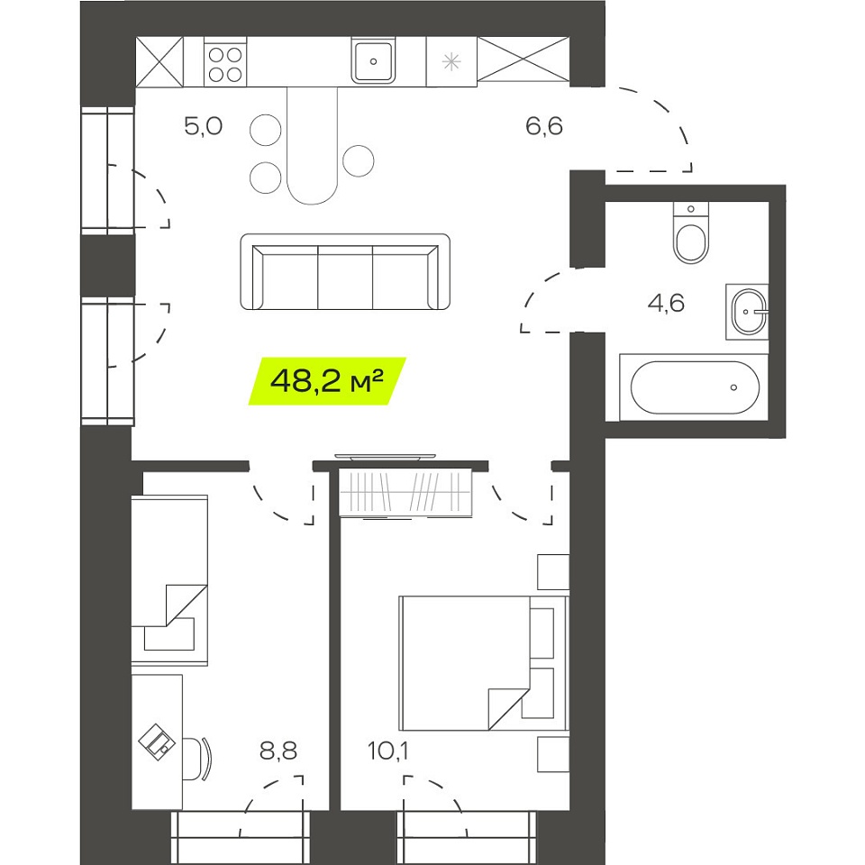 Четырехкомнатная студия, 76,64м 2