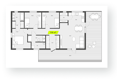 • Предусмотрен тёплый переход в гараж, отдельная терраса и удобное зонирование помещений.