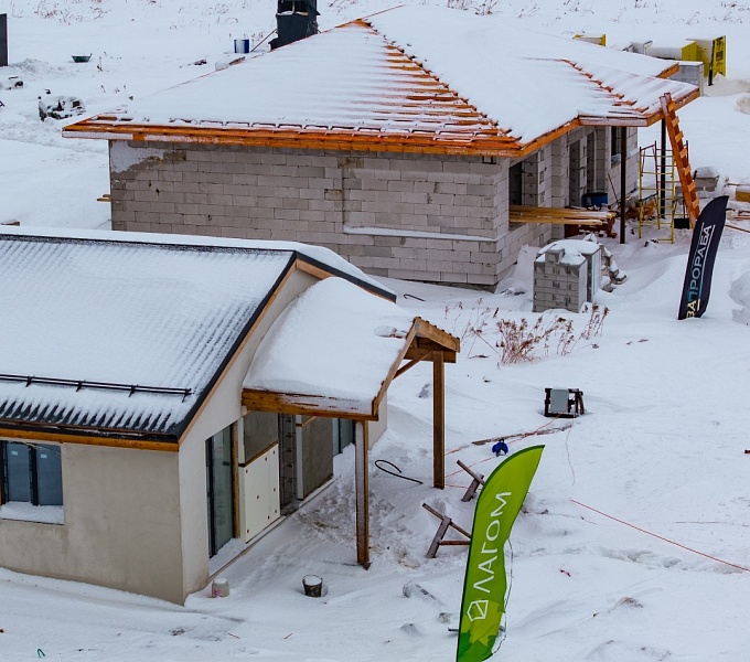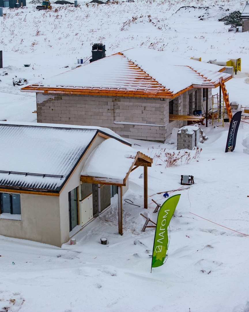 • «Два прораба» сосредоточены на возведении стен, устройстве армопоясов и монтаже стропильных систем, часть домов уже выходит на этап кровли.